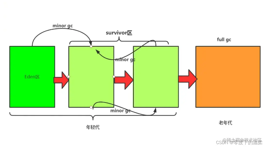 答: GC经常发生的区域是堆区,堆区还可以细分为新生代、老年代,新生代还分为一个Eden区和两个Survivor区。