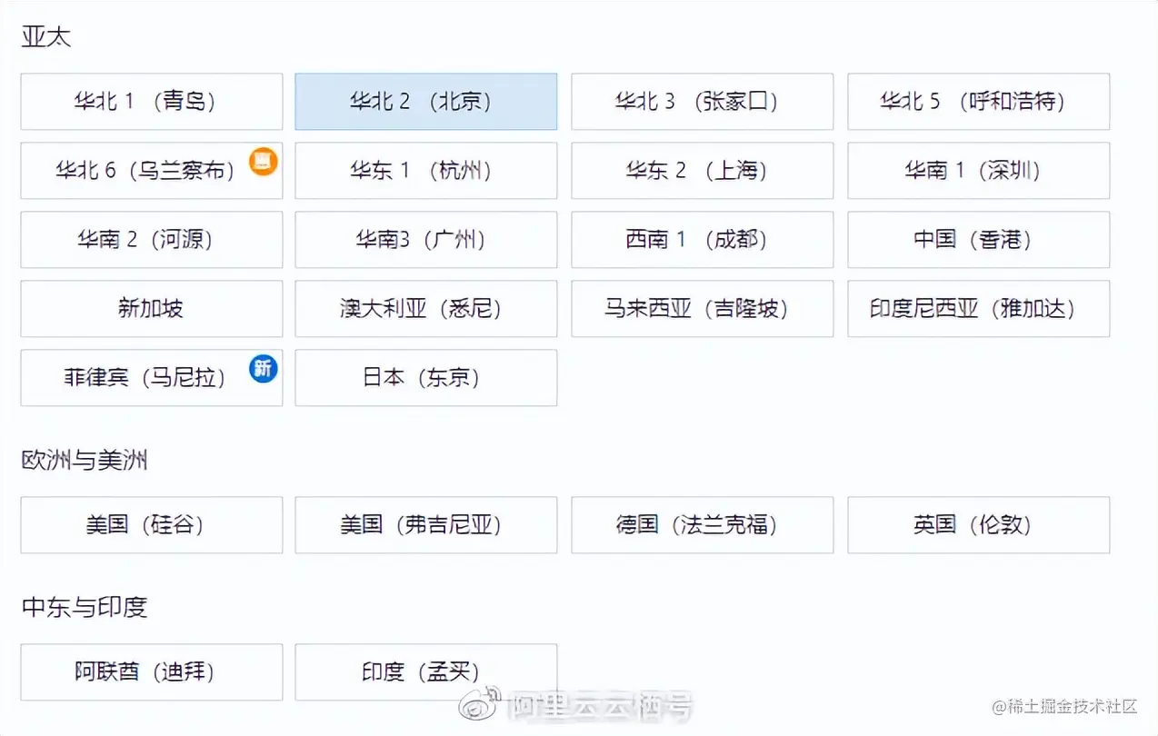 地域选择方面,阿里云为我们提供了海内外数十个地域,个人建议要选择距离客户近的地域;如果是自己用,则选择距离自己近的地域。