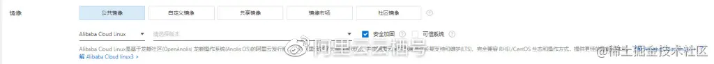 选择操作系统,我们可以根据自己的线上环境选择对应的操作系统,也可以通过镜像市场、自定义镜像等方式选择操作系统。