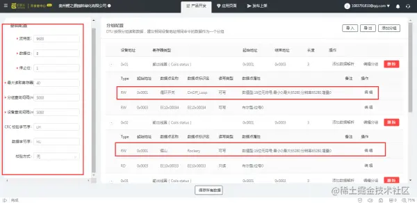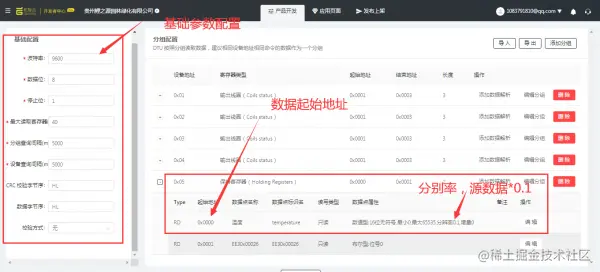 4.1 根据温度传感器通讯协议在云端进行配置: