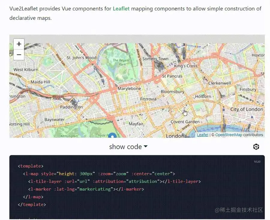 LeafletJS 是一个流行的开源库,用于移动友好的交互式地图。它非常轻巧,只有 39KB,并且具有大多数开发人员需要的所有映射功能。这个 Vue 2 包可以轻松集成到您现有的应用程序中,并可以访问 Leaflet 的所有功能。