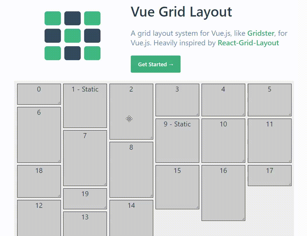 Vue Grid Layout 是一个类似于 Gridster 的栅格布局系统, 适用于 Vue.js,灵感来源于 React Grid Layout。