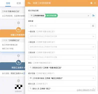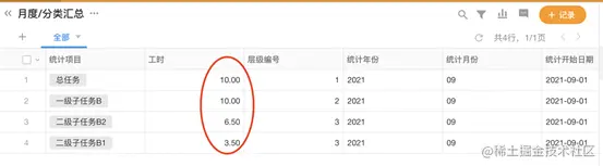 一旦有新的数据提交,工作流自动根据提交所在的层级向上追溯,并将本层新增的工时累加到上层各级的汇总字段。由于这些字段已经和统计源数据建立关联,所以可以让所有相关数据都同步更新。