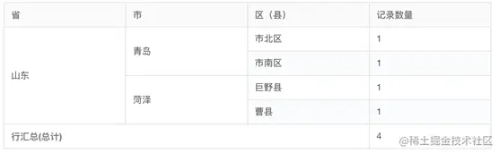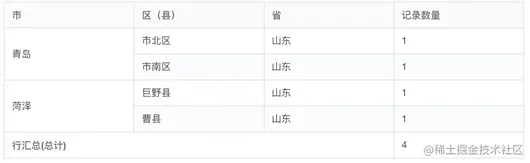 透视图可以添加多个行统计维度,报表会把内容相同的行维度自动进行合并展示。如果按照数据的范围大小进行维度排序,就可以实现逐层展开的效果。如果还不太熟悉透视图,可以先参考一个包含行政区划的简单例子:工作表记录中每个地址都包含“省—市—(区)县”3个字段,如果严格按照这个顺序来设置,即可按照地区范围的大小逐级展示。