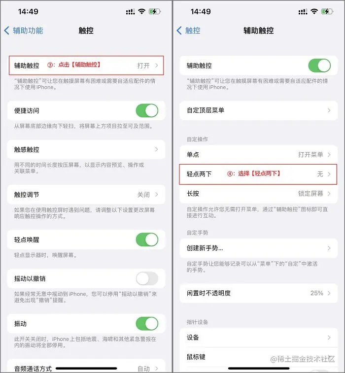此方法是和第二种方法比较相似的一个过程步骤,都是需要用到苹果手机中的悬浮球来操作的,那么轻点两下苹果手机怎么截屏呢?
