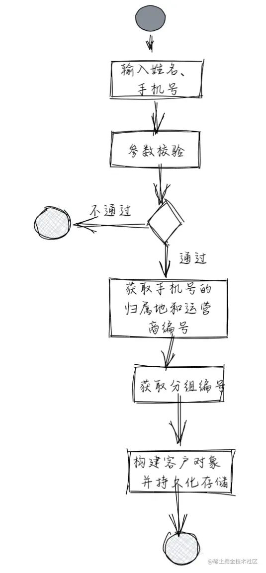 假设我们现在在做一个简单的数据统计系统,其运算逻辑是这样的:地推员输入客户的姓名和手机号,系统根据客户手机号的归属地和所属运营商,将客户群体分组,分配给相应的销售组,由销售组跟进后续的业务。