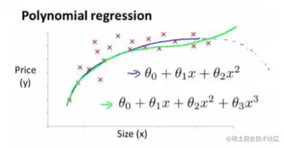 这样便将高阶方程模型转换成线性回归模型。这也算是**特征缩放 (Features Scaling) **的一种。