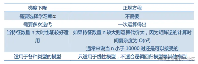 那么我们现在有两个机器学习的算法了,一个是梯度下降,一个是正规方程,两个方法比较如下:
