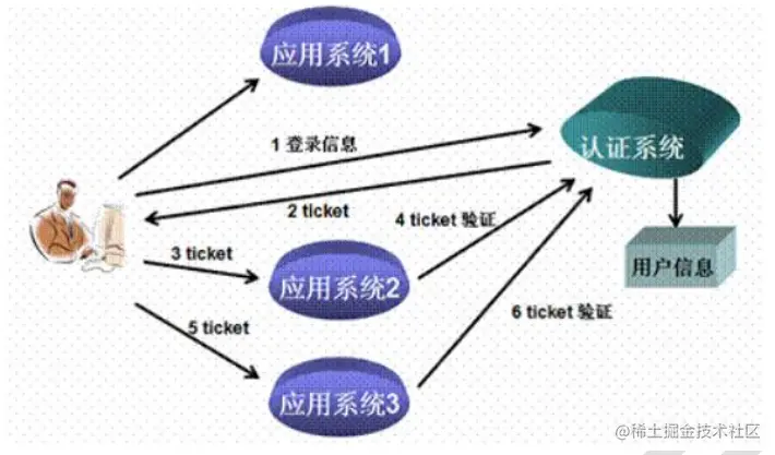 “单点登录”就是专为解决此类问题的。其大致思想流程如下:通过一个 ticket 进行串接 各系统间的用户信息