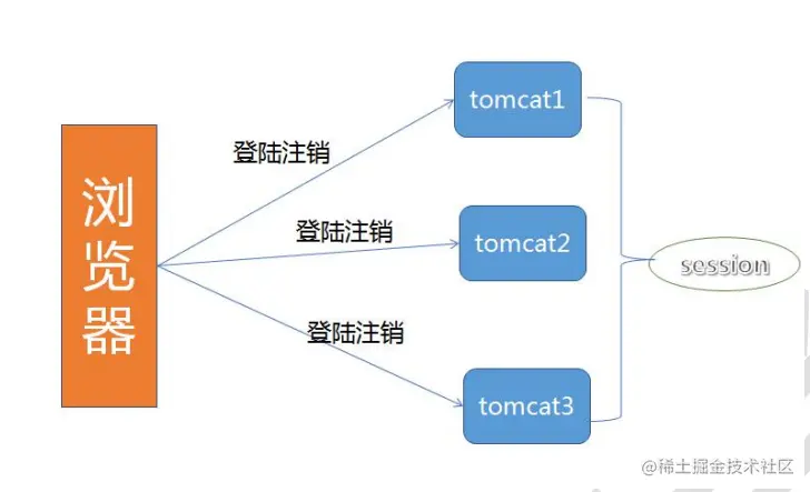 如上图,随着分布式架构的流行,单个服务器已经不能满足系统的需要了,通常都会把系统部署在多台服务器上,通过负载均衡把请求分发到其中的一台服务器上,这样很可能同一个用户的请求被分发到不同的服务器上,因为 session 是保存在服务器上的,那么很有可能第一次请求访问 的 A 服务器,创建了 session,但是第二次访问到了 B 服务器,这时就会出现取不到 session 的情况。