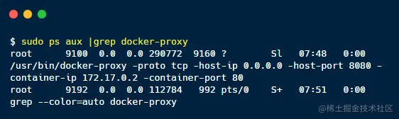 此时使用 ps 查看主机是否有 docker-proxy 进程
