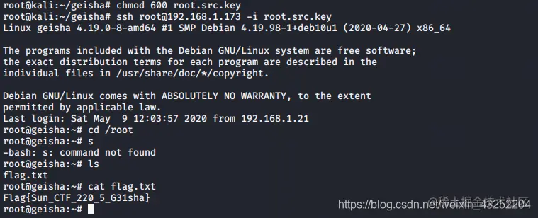 尝试使用ssh 登录root,使用以下命令获得在/root/.ssh 目录下的root用户登录ssh 的私钥
