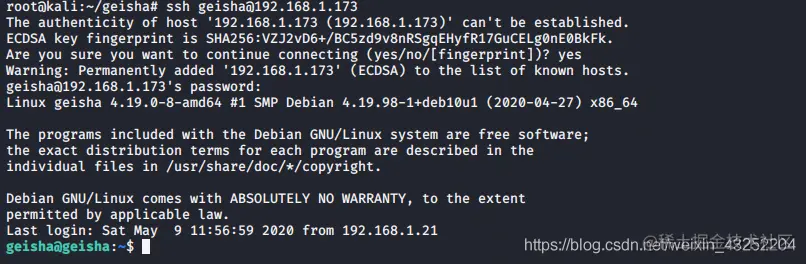 ssh geisha@192.168.1.173