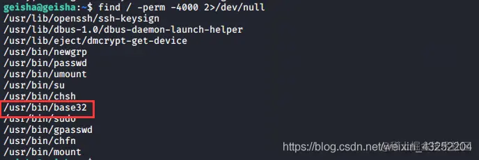 find / -perm -4000 2>/dev/null
