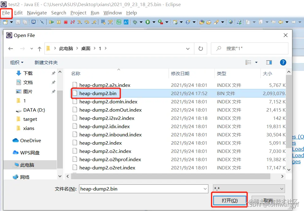 每个bin文件 单独放一个文件夹里面,因为会生成一些其他的文件,File -> Open File。