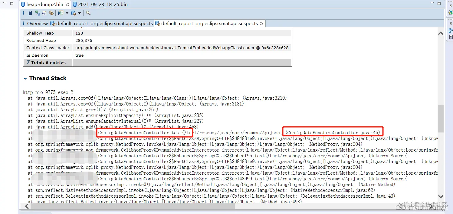 leak suspects里面 能看到 details,点击 details能看到定位的问题,比如: