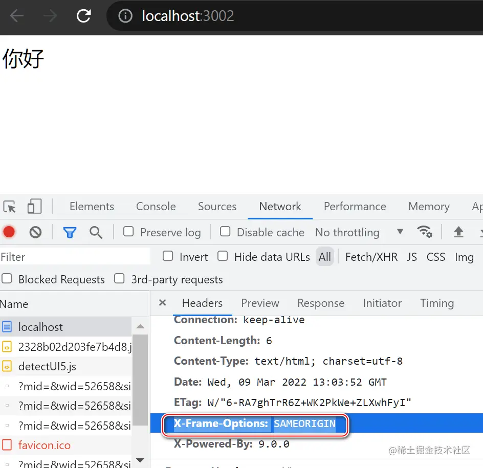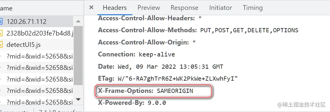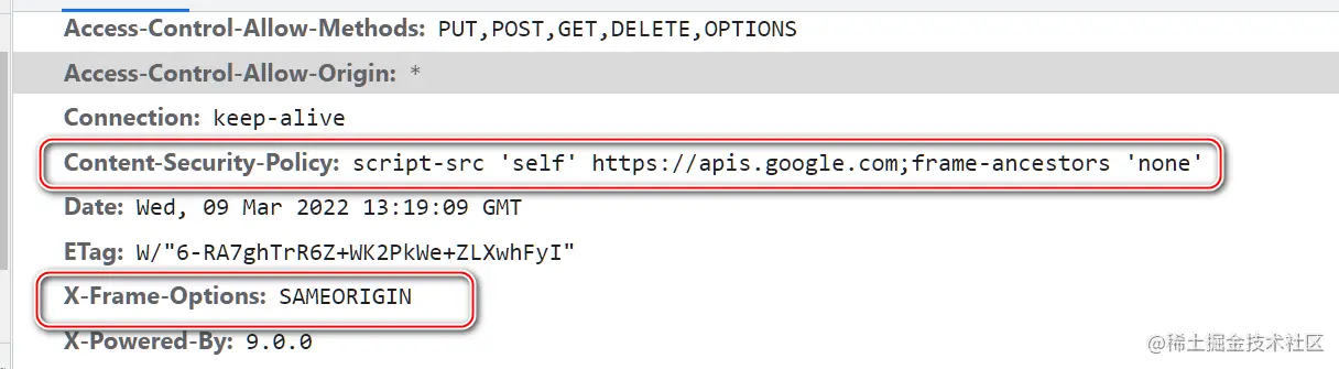 X-Frame-Options 仅通过设置 HTTP 标头起作用,如下例所示。