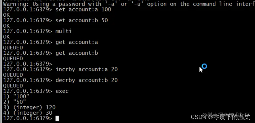 Redis 事务本质:一组命令的集合!一个事务中的所有命令都会被序列化,在事务执行过程中,会按照顺序执行!一次性,顺序性,排他性!执行一些列的命令!