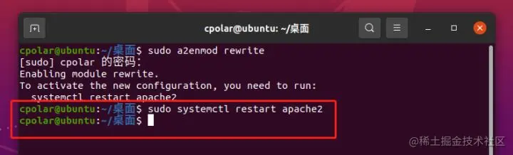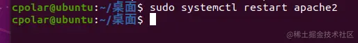 在命令输入并执行完毕后,Ubuntu会提示重启apache2,即输入命令“sudo systemctl restart apache2”(或“sudo service apache2 restart”)。