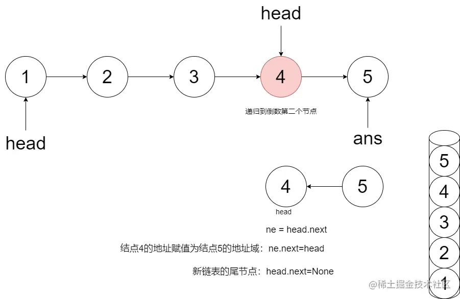ans = self.reverse_list(head.next) # 递归下一个结点 到 倒数第二个结点