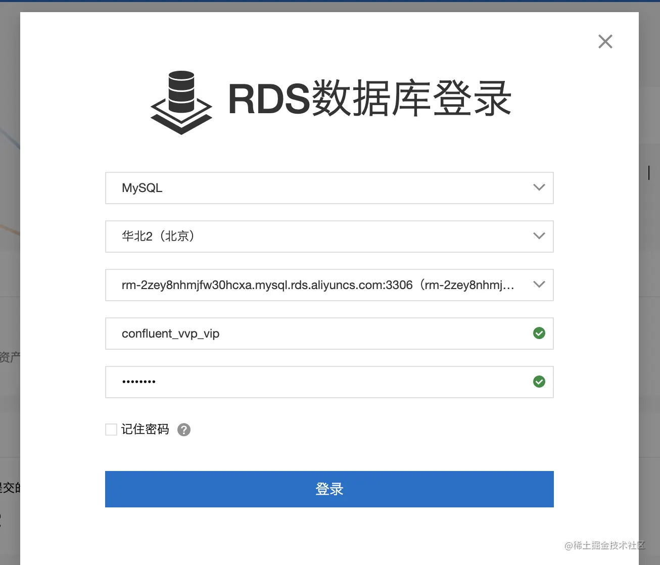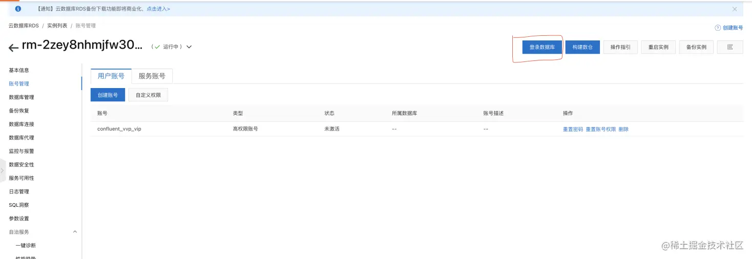 - 使用系统自带的DMS服务登陆RDS,登录名和密码输入上面创建的高权限账户