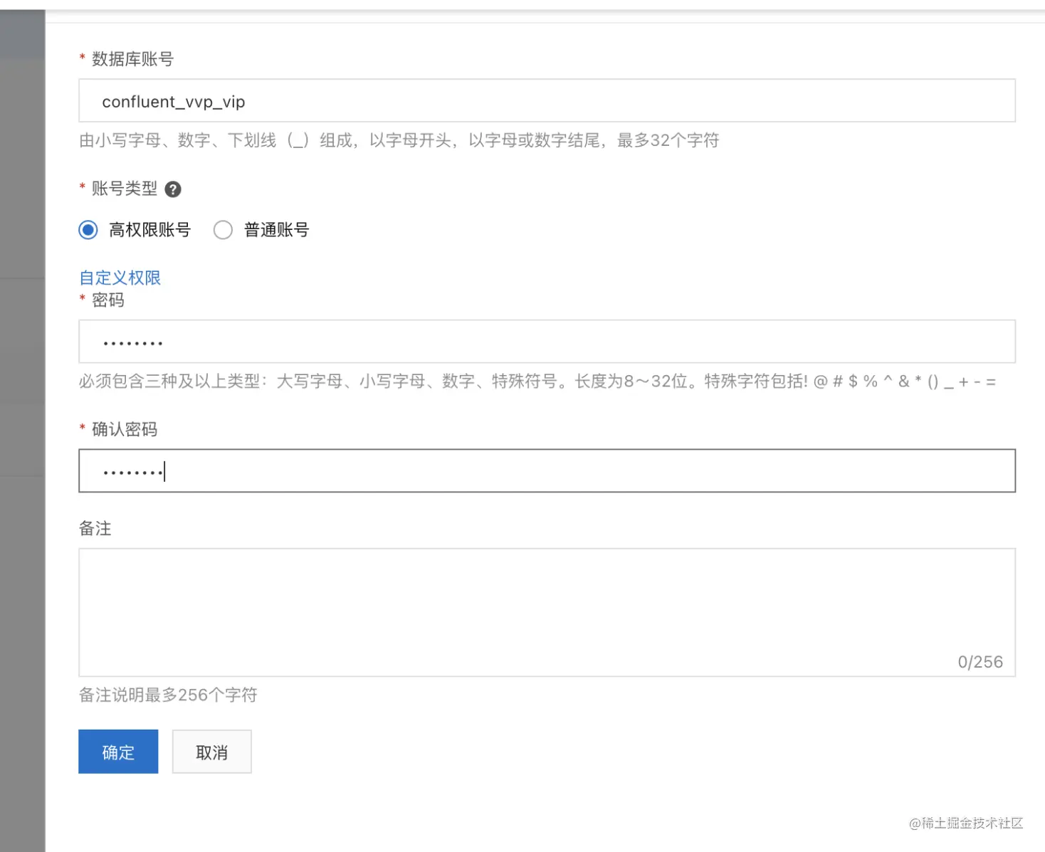 - 在【账号管理】页面创建账号【高权限账号】