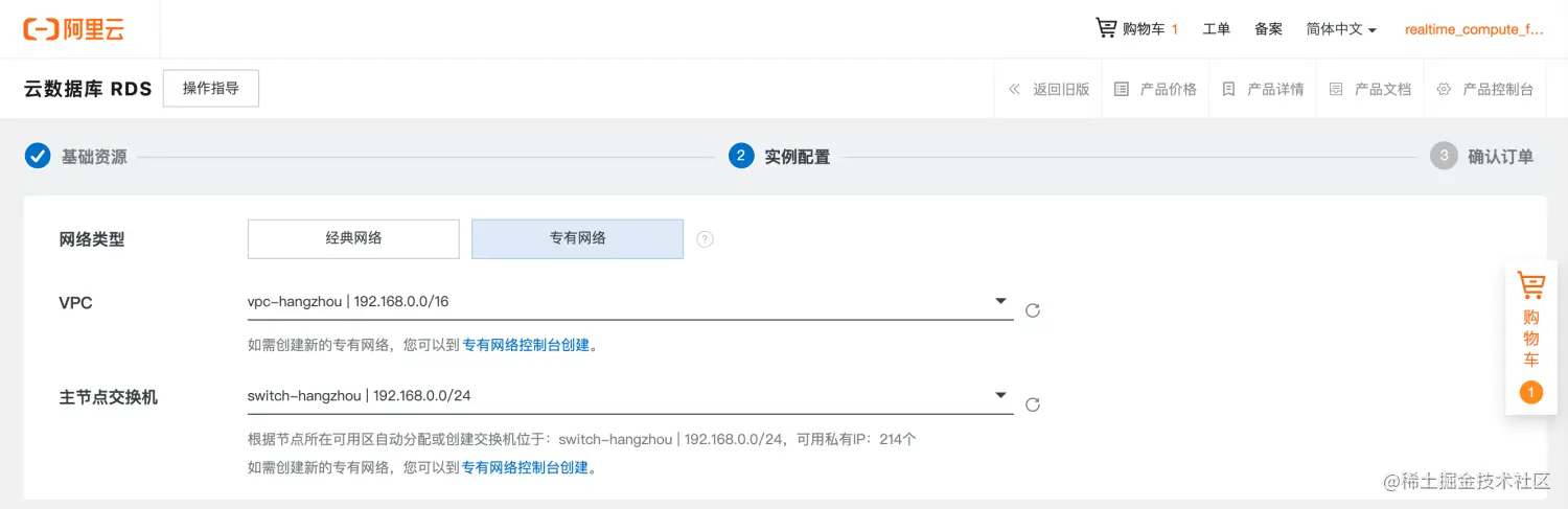 - 登录 RDS 管理控制台页面,购买RDS。确保RDS与Flink全托管集群在相同region,相同VPC下