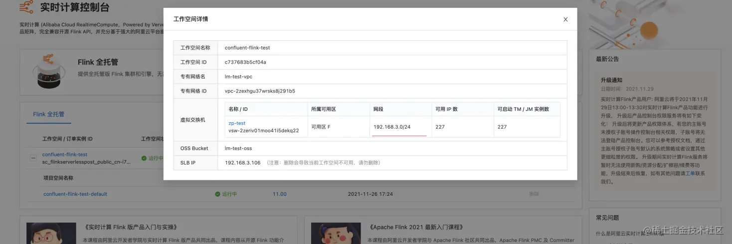 3.【vswitch IP段】可在 flink的工作空间详情中查询