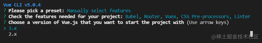 选择要安装的脚手架版本?
