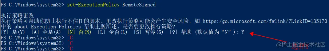 解决方案:以管理员身份运行PowerShell,执行命令set-ExecutionPolicy RemoteSigned
