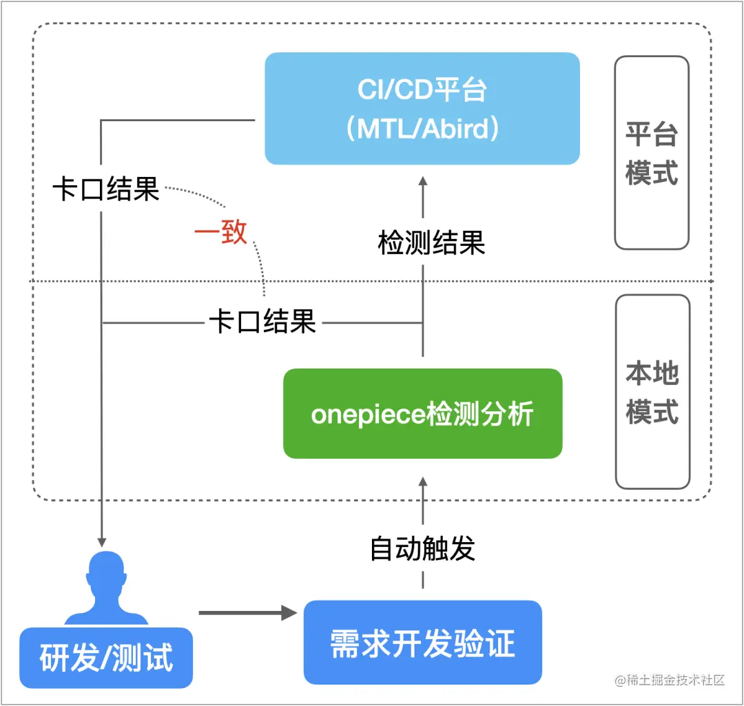 对于开发/测试同学,在提测、集成、灰度/正式版本发布这些关键节点,都需要进行apk构建,同时,会自动触发已经部署好的各项检测分析。如果是本地打包,检测不通过,会直接构建失败,并在失败原因中,给出相关信息;如果是CI/CD平台打包,卡口结果会以平台页面形式呈现;无论哪种模式,都会中断流程,待研发同学修复问题后,再继续进行。这样,就实现了腐化问题的及时感知,就地修改。