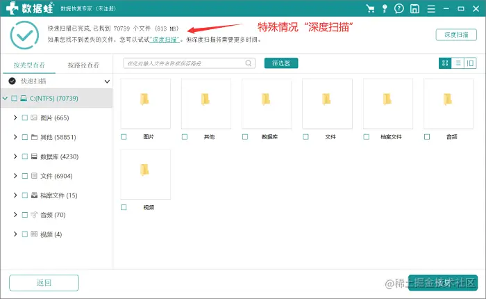 备注:当你在扫描完成后未找到或未找全面的丢失数据,需要进行“深度扫描”。