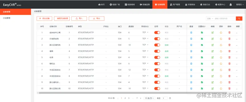 EasyCVR视频融合云服务可支持通过标准协议,如国标GB/T28181、RTSP/Onvif、RTMP等接入平台,也能支持厂家的私有协议与SDK接入,比如海康Ehome、海康SDK、大华SDK等,几乎涵盖了市场上大多数的视频监控设备。