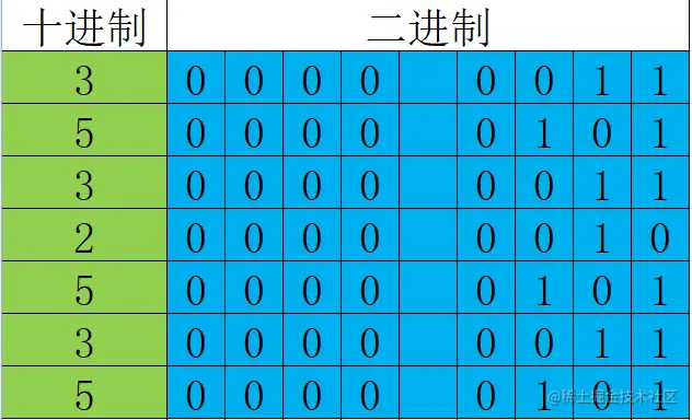 我们先将该数,转化为 二进制,数据 应当如下