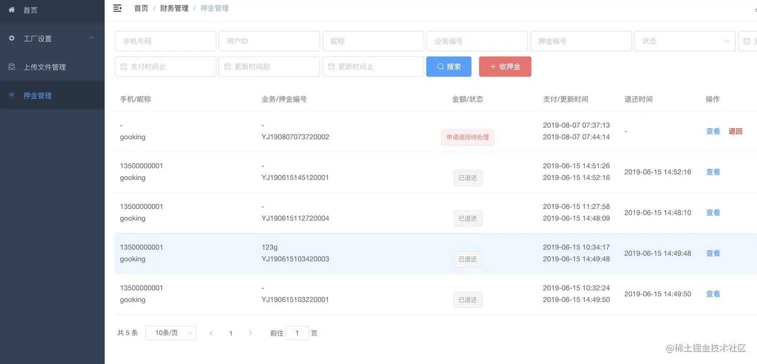 押金管理demo