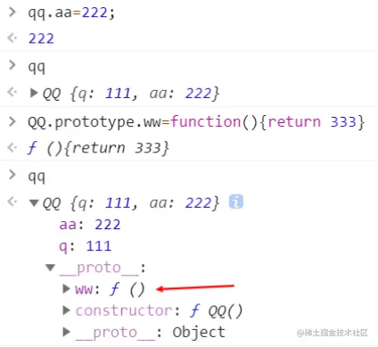QQ.prototype上添加了ww这个复杂数据类型,qq的__proto__会直接变化