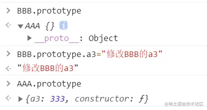下面截图中是正确写法 修改BBB的原型属性不会影响AAA,因为BBB自己新建了一个,然后发生了屏蔽