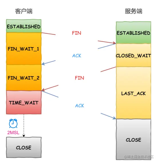 - 客户端经过2MSL时间后,自动进入CLOSED状态,至此,客户端完成连接关闭