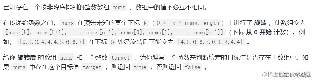 nums在预先未知的某个下标上进行了旋转 -10^4 <= target <= 10^4