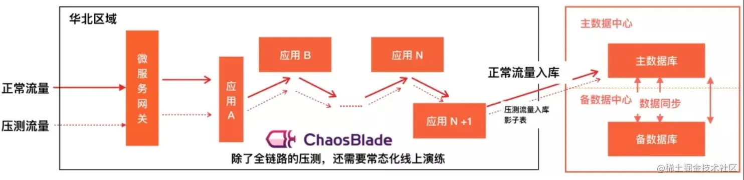 到这里基本上说完了在线上应用的四个核心环节中,尤其提及了容易由于架构设计、基础设施脆弱等原因而造成的流量有损的点,也列举了对应场景下的解决方案。不过站在安全生产的角度上,一切安全生产的目的都是防范于未然。在互联网的系统中相比较于传统的软件产品,我们推荐两个在生产级别进行防范的方法:全链路压测和安全生产线上演练(也叫故障演练)。