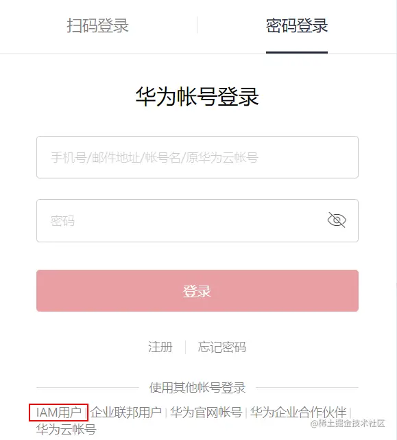 根据账号类型选择IAM用户登录或者直接登录: