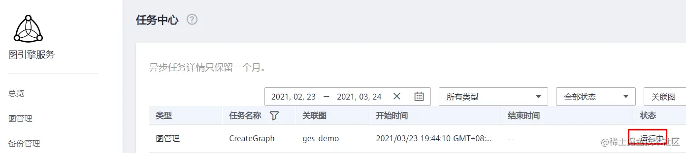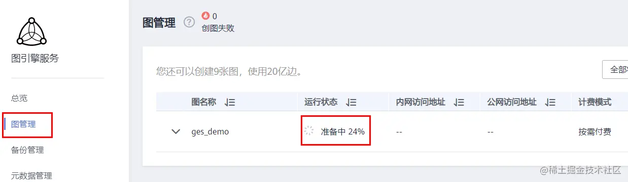 点击左侧栏的“图管理”,会看到图的创建进度。