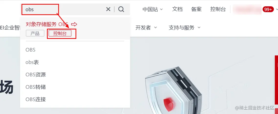 登录之后在搜索框中输入“obs”,如下图,然后点击“控制台”进入: