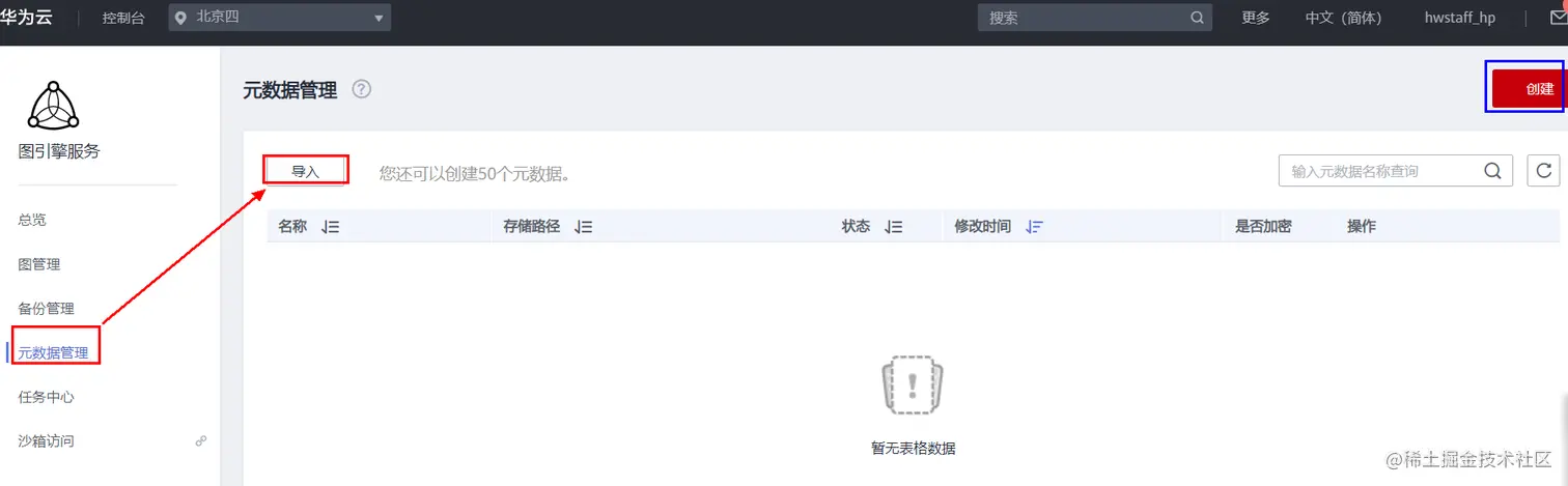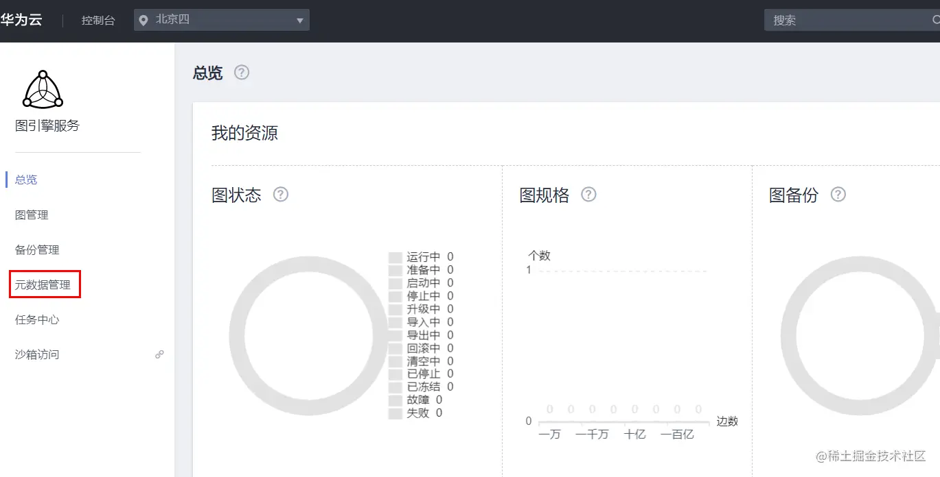 点击控制台进入之后,进入如下界面,点击左侧“元数据管理”进入元数据管理界面: