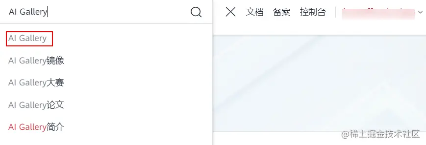 在搜索框中搜索 AI Gallery: