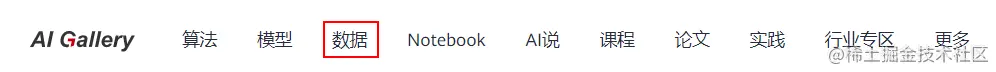 进入 AI Gallery 界面后,选择“数据”栏: