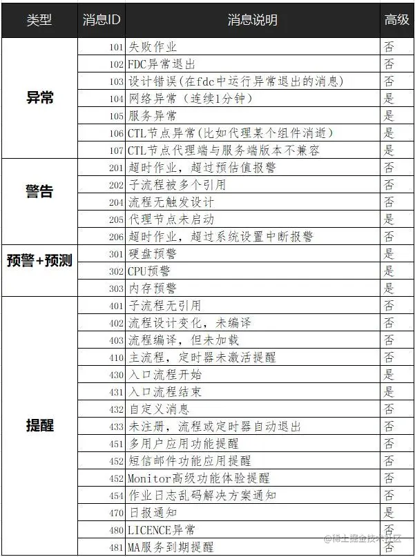 说明:高级消息,只有对Monitor高级功能授权后才可使用。