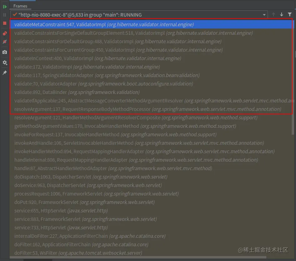 添加注解之后spring就会逐个校验DTO中加了校验注解的字段,完全通过才可以进入业务处理,否则就会抛出MethodArgumentNotValidException异常