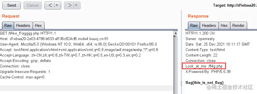 打开题目,就一个hack me,尝试看看存不存在robots.txt,果然存在东西,访问/fAke_f1agggg.php